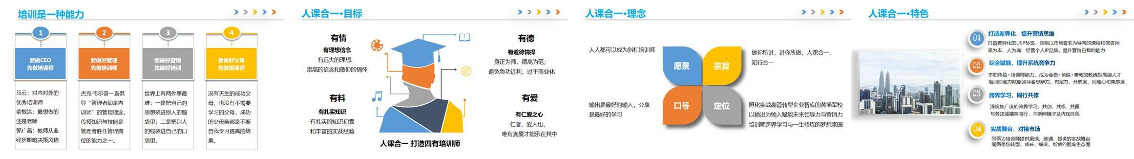 ① 培訓師光面與影面 ② 黃金圈法則 ③ 馬斯洛需求層次論 ④ 人生自由之路:E-S-B-I-T ⑤ 競爭優勢 ⑥ FABE營銷法則 ⑦ USP標簽,三歷,切蘿卜法 ⑧ 課程體系思維 ⑨ 展示培訓效果的秘訣 ⑩ 營銷的本質 ? 培訓師營銷“證據” ? 培訓師的課程包 | ||